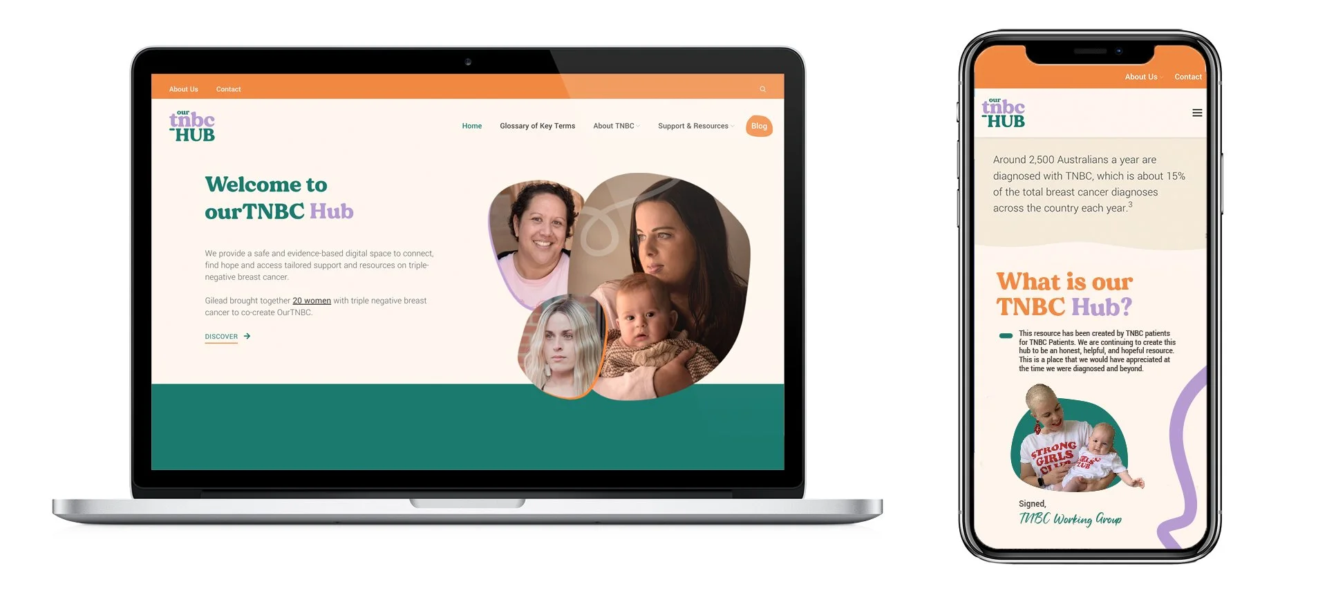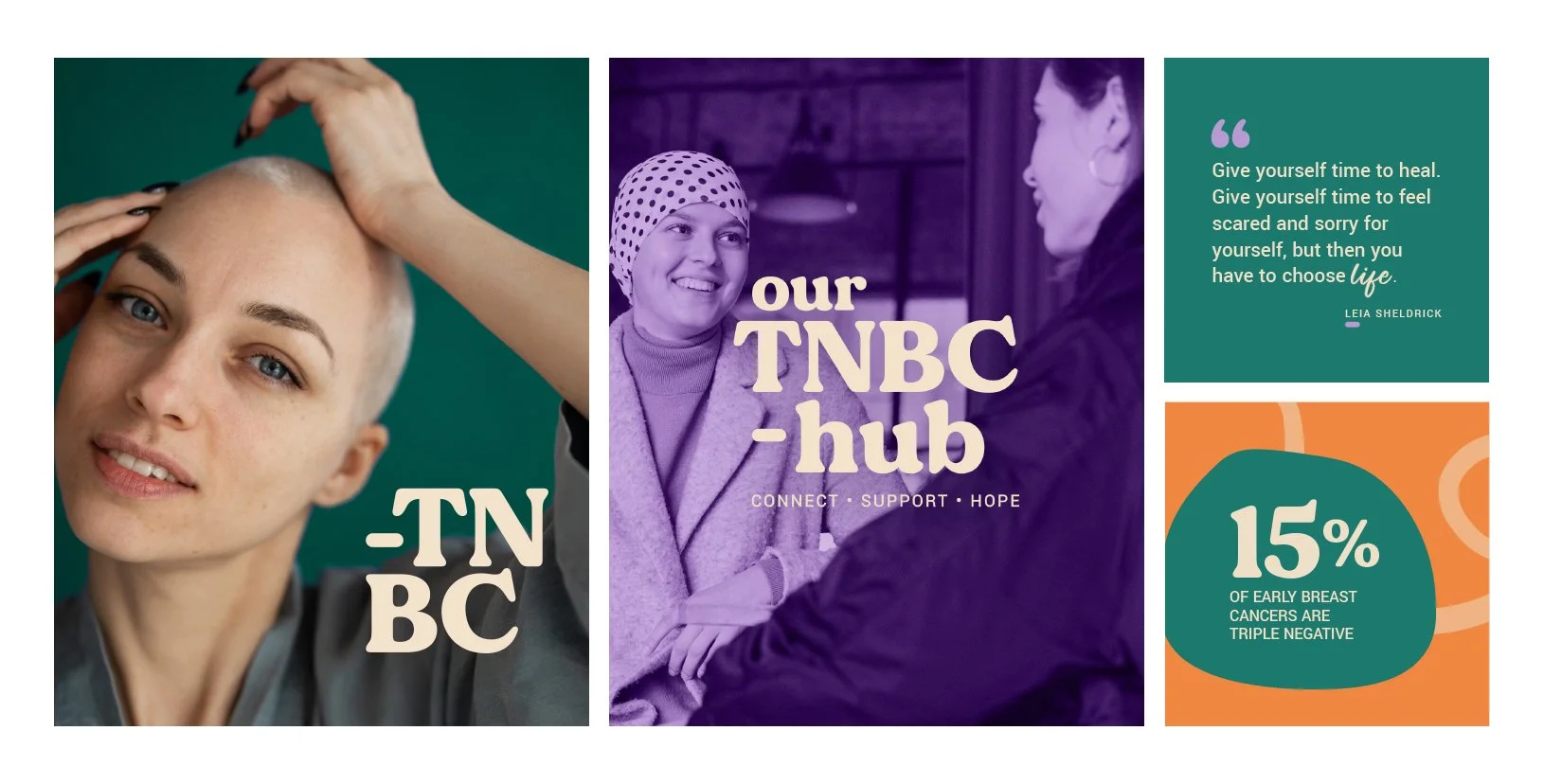 Brand design for Triple Negative Breast Cancer (TNBC) Hub including logo design, brand guidelines and digital media templates. The brief required the brand to be modern, refined and approachable. Natalie took this into account and chose a font with soft, round edges that was bold, complemented by a gender-neutral colour palette and organic shapes as brand devices to weave it altogether.